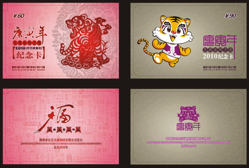 该套生肖纪念卡一套两张,销售价分别为:90元和120元。每套卡均附独立卡套,小巧精美,便于收藏。卡片分别以玫瑰红、浅灰为主色调,以中国传统的剪纸“虎”和卡通“虎”为主要图案,色彩鲜艳,节奏明快,极具收藏价值。“虎”卡也是乘车卡,功能同A卡。据介绍此套生肖纪念卡于2010年元月1日起在郑州市公交总公司所属各人工IC卡充值点销售。